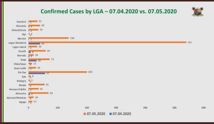 COVID-19 CASES IN LAGOS BY LOCAL GOVERNMENT DISTRIBUTION…LAGOS MAINTAINED DOMINATES ,FOLLOWED BY ETI-OSA LOCAL GOVERNMENT AREAS.