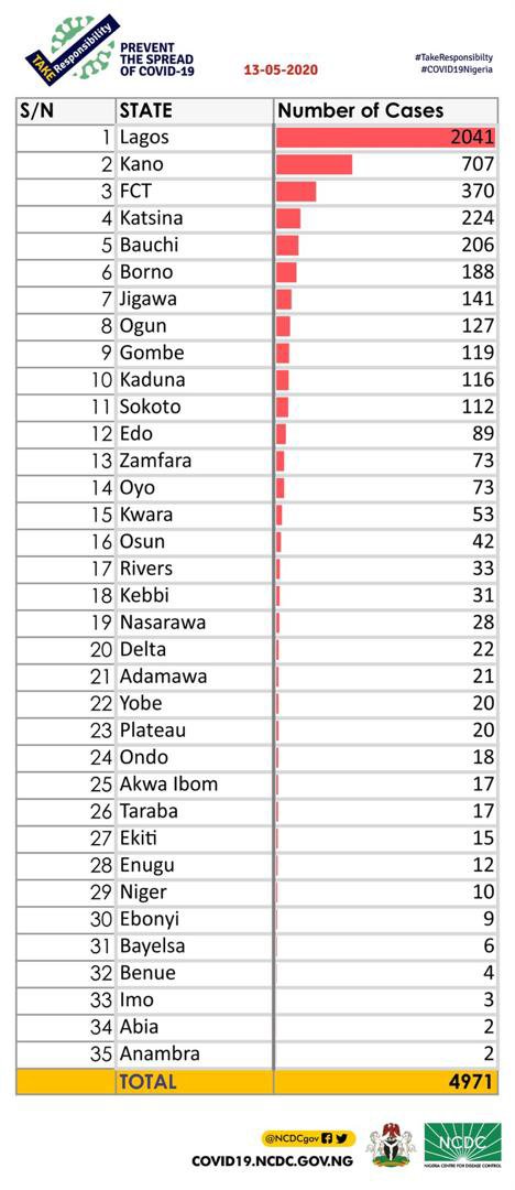 This brings to 4,971 cases of COVID-19 in Nigeria,