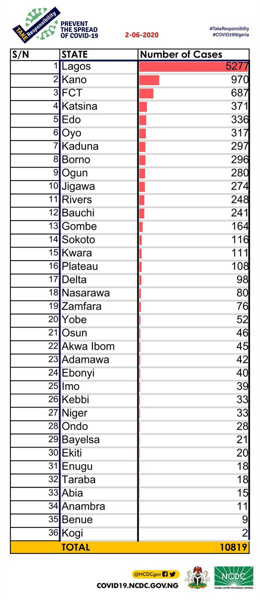 The Nigeria center for Disease Control NCDC has confirmed the record of another 241 cases of Corona Virus in the Country with Lagos State leading Fourteen other States including the Fct with 142 confirmed cases