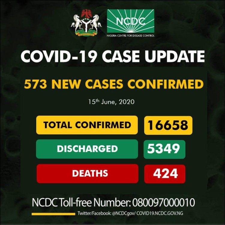 The Nigeria centre for disease control has confirmed 573 new cases of COVID-19
