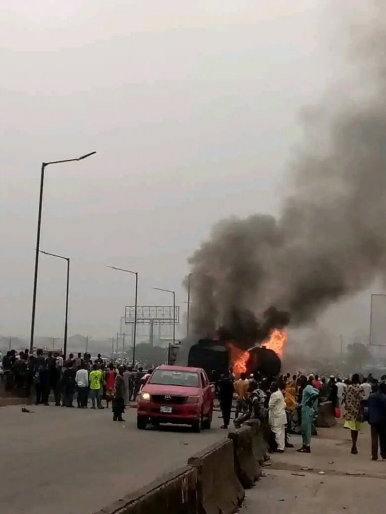 According to the Lagos state emergency response team,one of the Tankers that carried 33 ,000 litres of Premium motor spirit crashed into another truck and resulted in a fire.