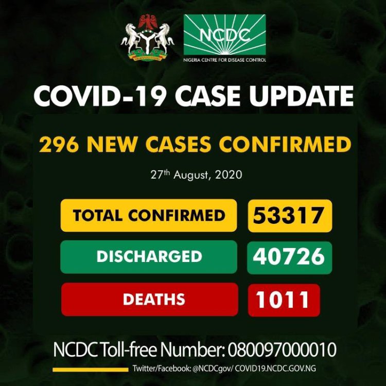 The Nigeria centre for disease control has confirmed 296 new cases of COVID-19 across 17 States in Nigeria including the Federal Capital Territory, Abuja.
