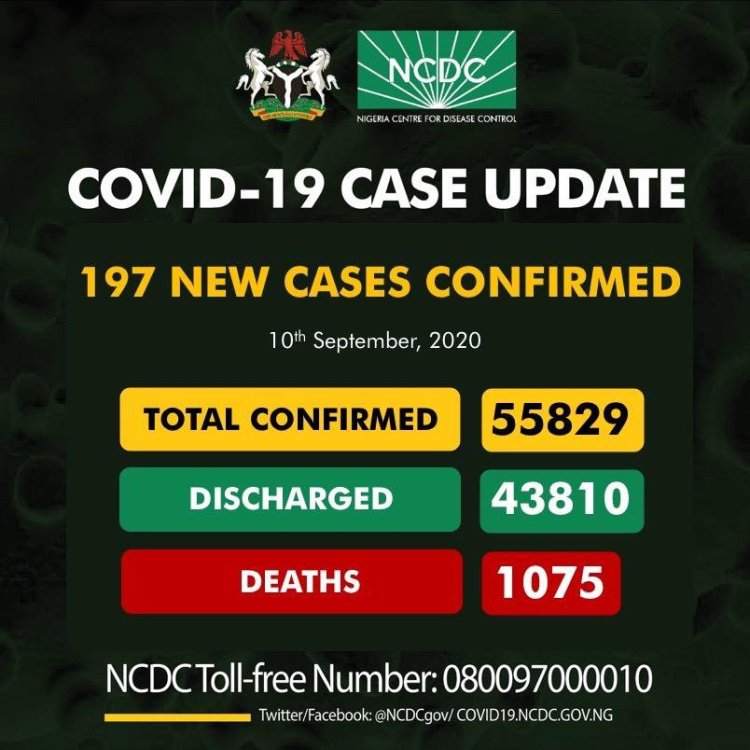 The Nigeria centre for disease control has confirmed 197 new cases of COVID-19 across 13 States in Nigeria,including FCT.