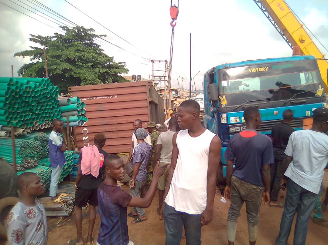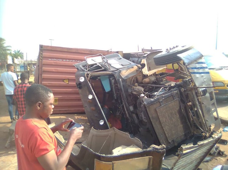 This Vehicle was coming from Sango Ota to Oju ore when the Driver lost control and fell side ways Near UBA on Monday Morning.