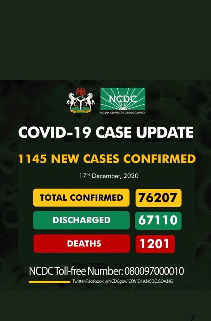 The Nigeria centre for disease control has confirmed 1,145 new cases of COVID-19 across 24 States in Nigeria.