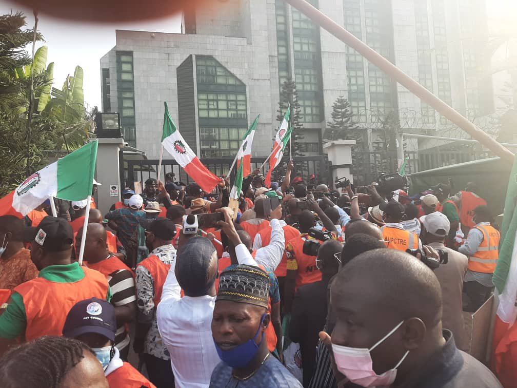 Wednesday Protest by workers at the headquaters of the cooperate affairs commission turned violent as hired thugs make efforts to set ablaze vehicles of protesting members of the Nigeria Labour Congress led by its president Ayuba wabba.