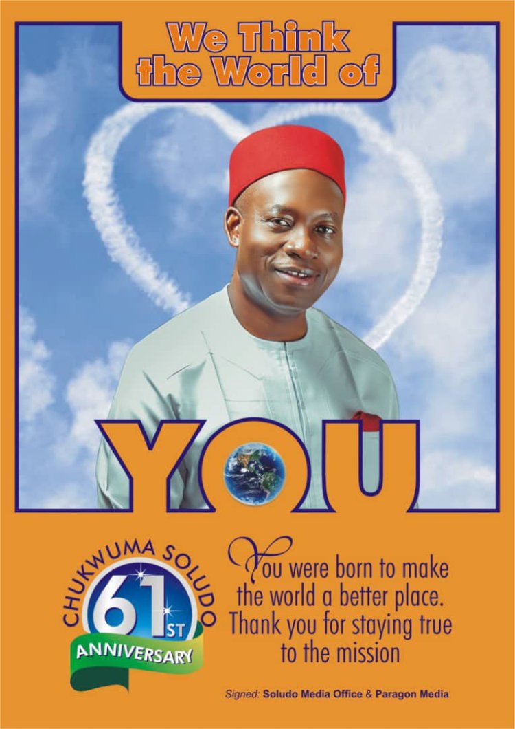 Today is Soludo’s birthday. We join his family and friends across the globe to wish him well and celebrate this milestone. We celebrate a life of commitment and devotion to making society better than he met it, which has underpinned all his interventions in his public and private endeavours. Succinctly put, he has put enormous time and resources, thinking and working on breaking or reducing the growing dynasty of poverty in our society.