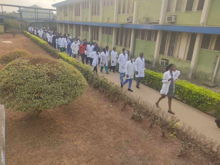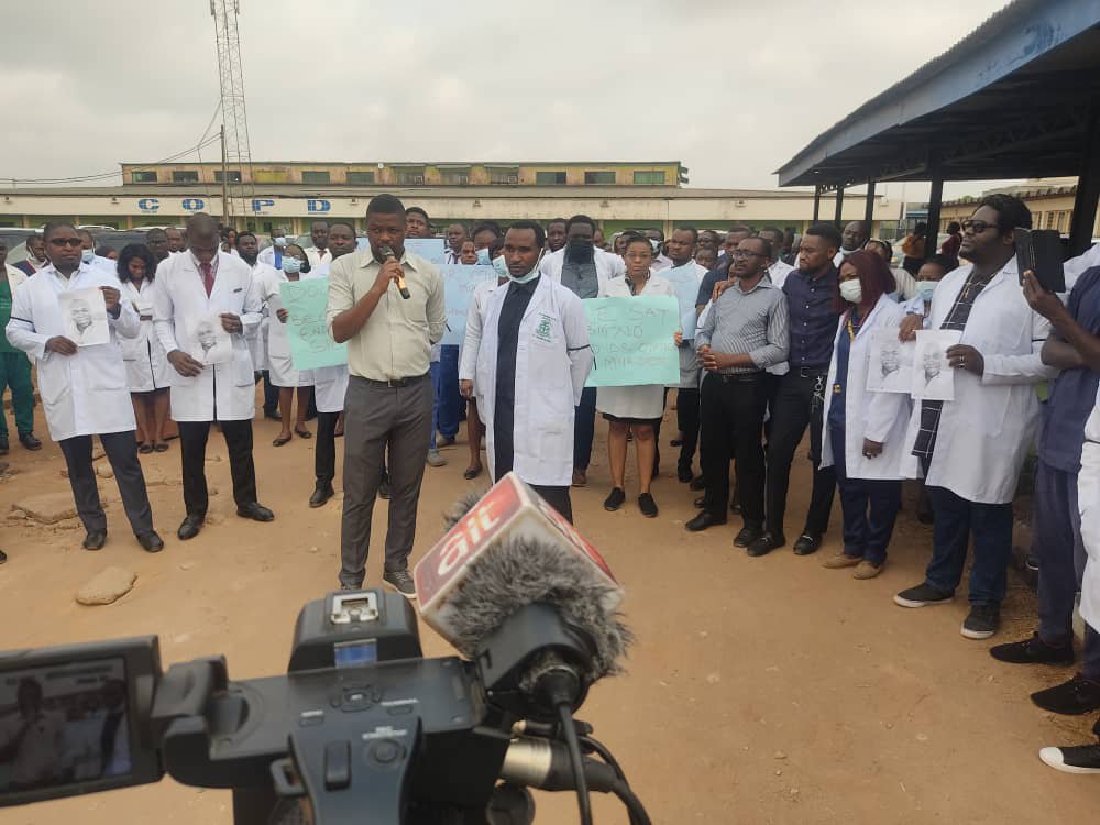 Association of Resident Doctors university of Benin teaching hospital, UBTH On Tuesday morning embarked on a protest against the killing of one of their colleagues Doctor Otote Osaikhuomwan of the department of Ophthalmology, UBTH.
