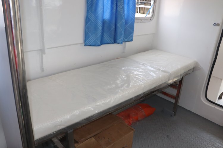 The clinic boat which is compartmentalized into four sections including; the Wheel house (for captain and crew), observation room (for patients), Doctor’s office and Nurses station and reception has marine safety equipment including life jackets, fire bucket, life buoy, life rat fire extinguisher and navigational lights, as well as navigational equipment like garmin ecomap, compass, VHF radio accessories and siren.