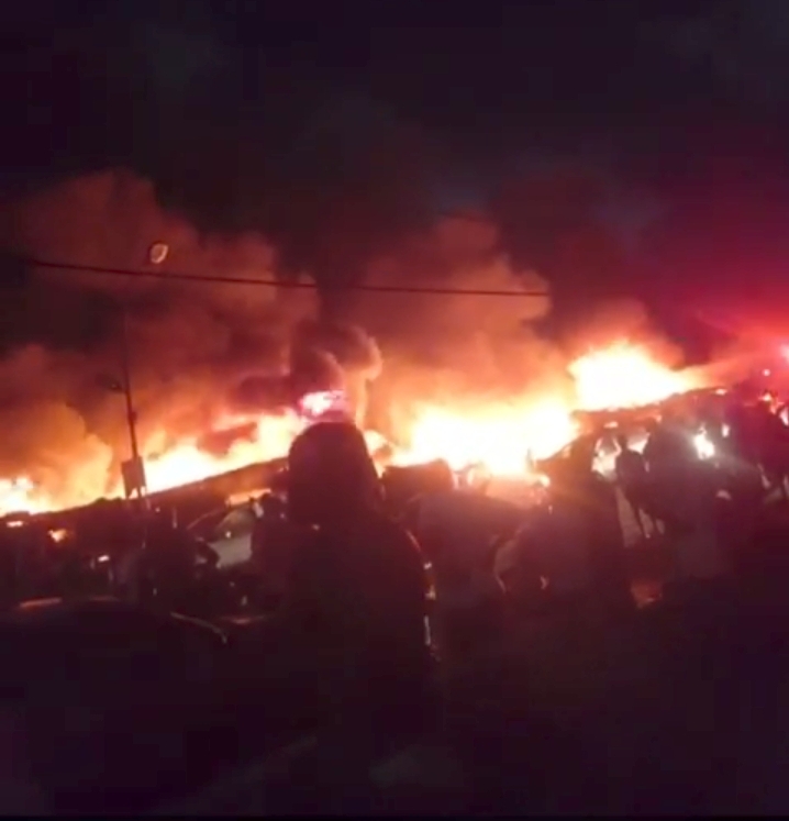 A fifty year old man( name withheld) has been shot dead by suspected hoodlums who stormed the popular Akere spare parts market in Ajegunle Lagos early Wednesday and set the market ablaze.