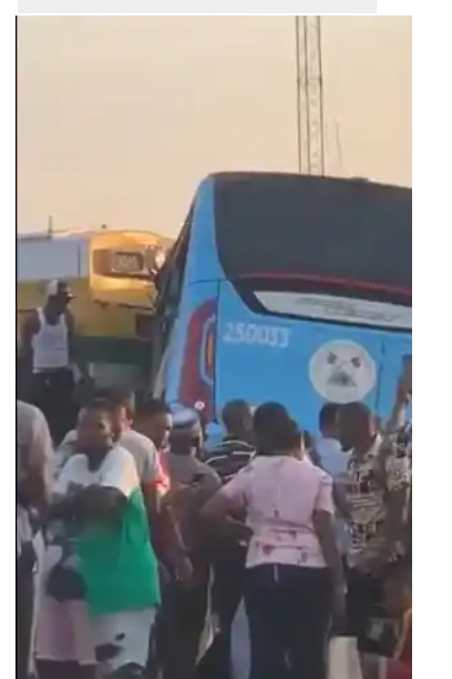 The State Government staff bus was trying to cross the PWD/Sogunle rail crossing while the train coming into Lagos from Abeokuta trapped the bus on its rail.