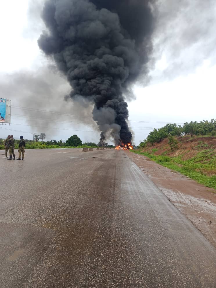 The number of casualties is yet to be ascertained as the vehicles involved were still in flames with soldiers blocking the road to prevent other vehicles and Drivers from getting to the location.