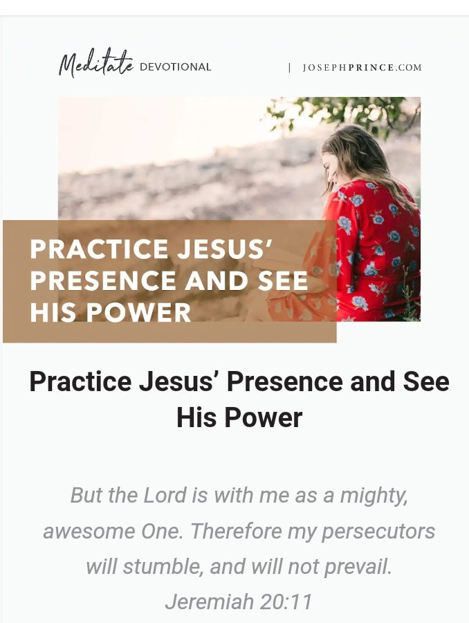 You see, my friend, you can’t go by your feelings. You go by the truth and the truth is this: God promised, “I will never leave you nor forsake you.” So the best time to practice His presence is precisely when you feel like Jesus is 100,000 miles away. Remember that feelings aren’t based on truth. God’s Word is truth!