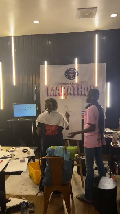 Nigerian Visual Artist Exceeds 72 Hours Mark Marathon Painting Challenge to make the Guinness world record