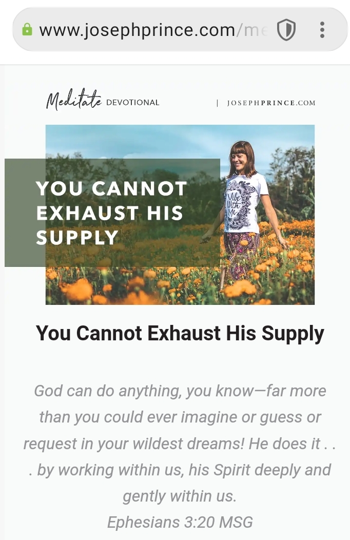 God’s supply of provision will always exceed your demand! He is such a BIG God, there is nothing He cannot do. My friend, don’t look to the world to supply your lack. Be wise—don’t touch easy loans with exorbitant interest rates hidden in the fine print, and become trapped in a financially sapping cycle of debt. Look to Jesus, His ways and His supply that never fails!