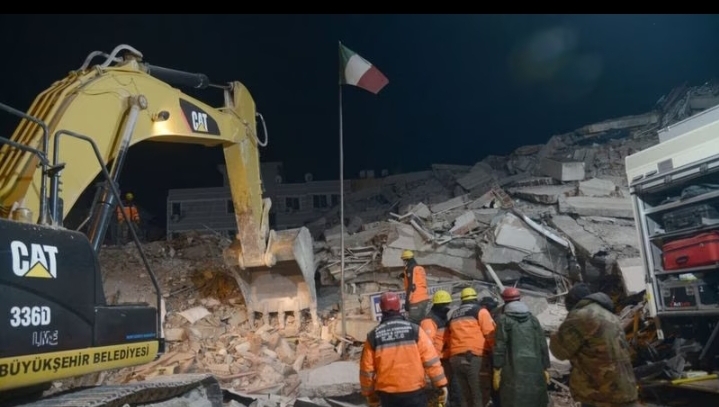 Residents and rescue Personnel searched for Victims and Survivors through the rubble of the collapsed Hotel in Adiyaman, two days after The Earthquake