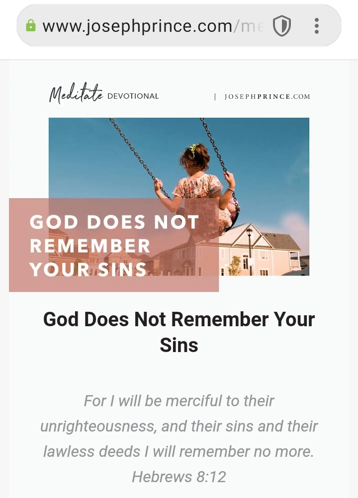 My friend, simply believe God’s Word, that through the provision of Jesus’ sacrifice, God indeed remembers your sins no more! Start living without the cloud of guilt, shame, condemnation, and judgment over your head. Stand bold and righteous in Christ and expect to receive His best!