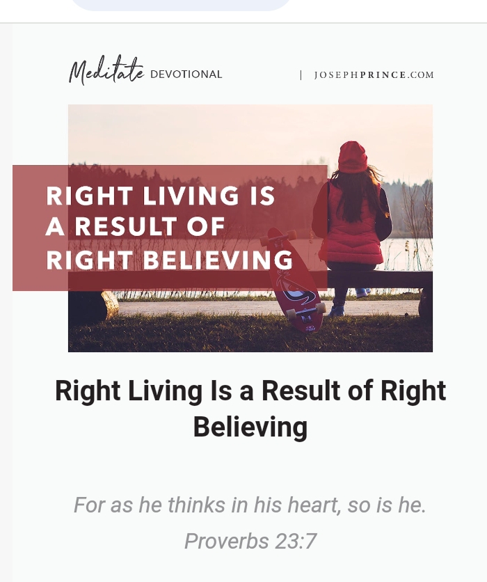 I say this over and over again, and I will never grow tired of saying it: Right living is a result of right believing.