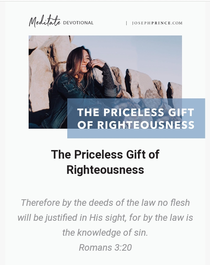 Righteousness is a gift. It is not a reward for perfect obedience to the law. You are clothed today not in your own righteousness, which is self-righteousness, but with the righteousness of Jesus Christ. God sees you as righteous as Jesus Himself. This is your permanent, eternal standing before Him because of what Christ has done for you.