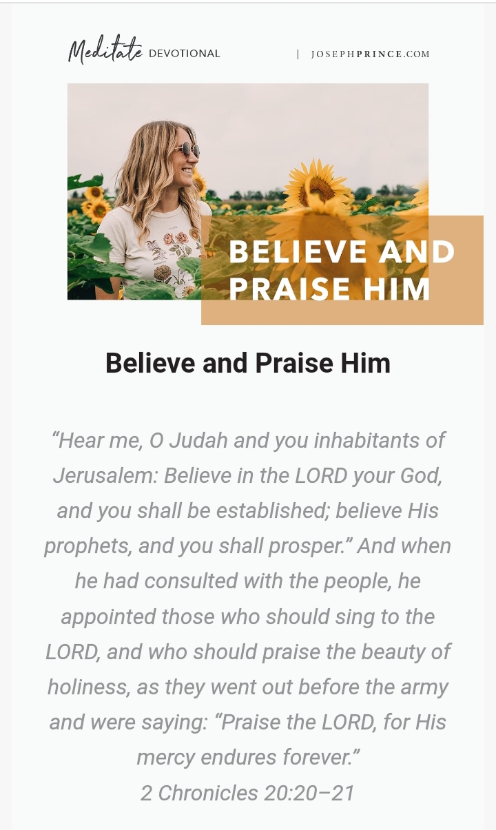 Today I want you to see two powerful keys to winning life’s battles from the account of King Jehoshaphat. The first is to believe in the Lord, and you will be established. God’s Word tells us also to believe the words of His prophets (the pastors and preachers whom God has placed in your life), and you shall prosper! That is the power of right believing.