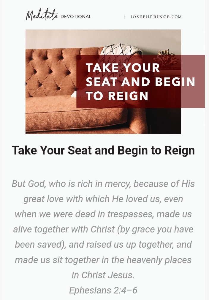 It is not about your work or performance, but Jesus’ work and performance. Only His work is a finished work. And not only did He sit down at the Father’s right hand, but today’s Scripture states that He also made us sit with Jesus!