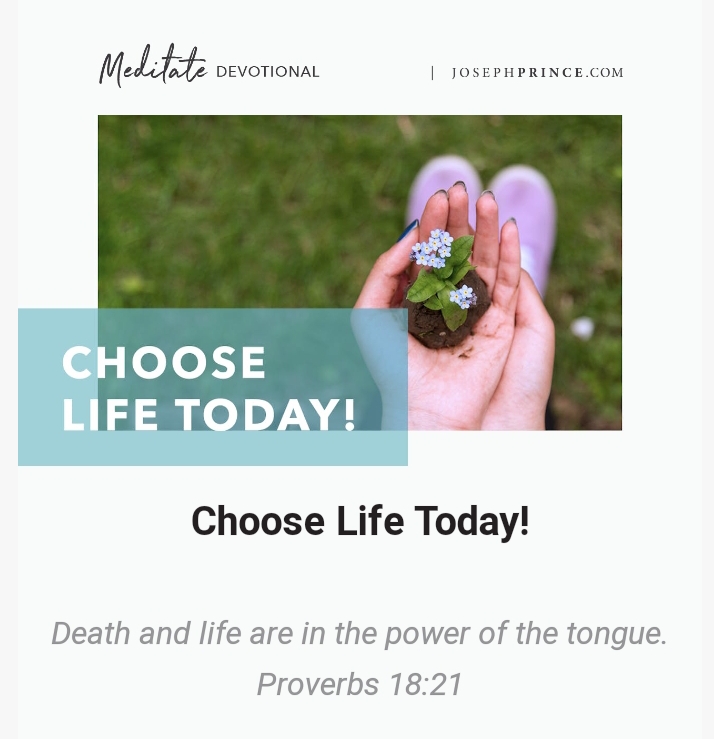 You can choose life today. How? By realizing that life and death are in the power of your tongue.