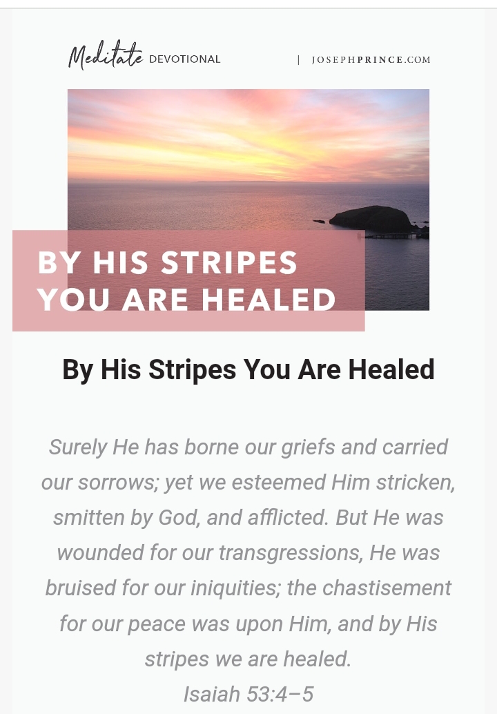 The prophet Isaiah saw a prophetic vision of our Lord Jesus on the cross, bearing the punishment for our transgressions. He declared that the chastisement we deserved came upon Jesus so that you and I will never have to go through what He endured on our behalf. And by the stripes laid on Him as He bore our chastisement, we are healed! Hallelujah!