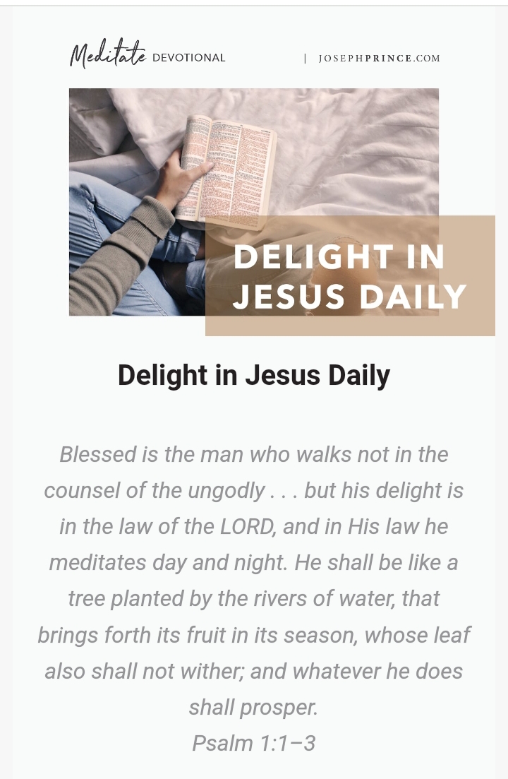 My friend, let your delight be in Jesus. See Him in every page of the Bible as you meditate on God’s Word day and night.