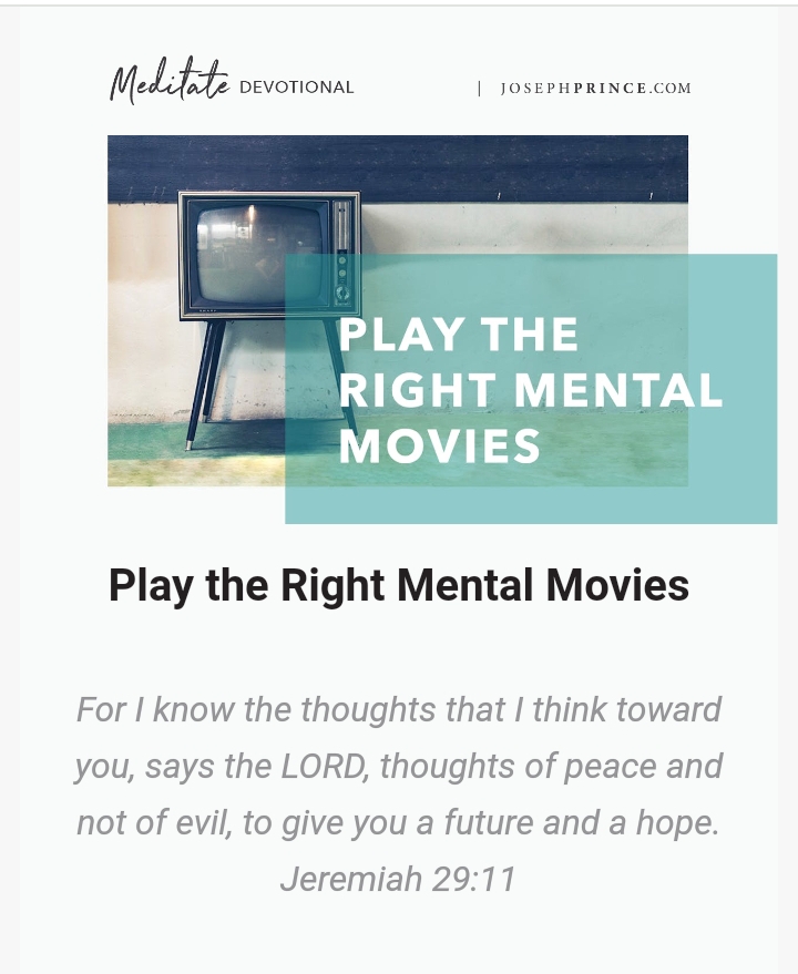 Then, tapping my index finger on the side of my head, I told her, “But watch your mental movies. Make sure that you play the right movies in your mind.”