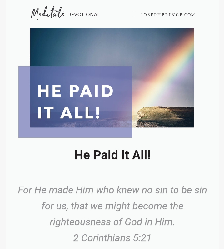 There is no more judgment, punishment, and curse for you because the full judgment, punishment, and curse for all your sins fell upon our Lord Jesus at the cross. He paid it all!