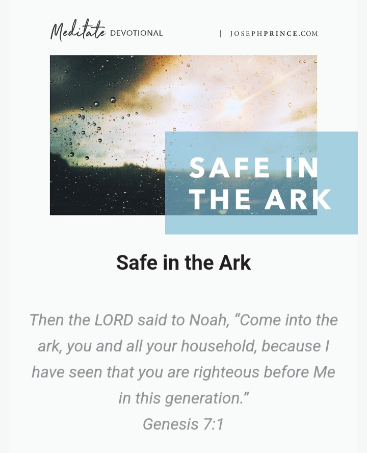 You see, a believer doesn’t fall in and out of righteousness. Our righteousness today is a gift from our Lord Jesus Christ (Rom. 5:17). This means that even though we may fail from time to time because we are imperfect human beings, we are still in Christ our ark and do not forfeit His blessings of protection.
