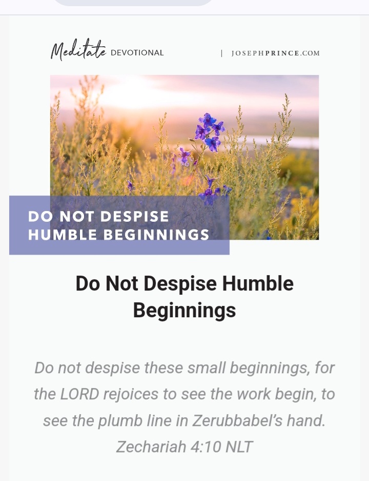 So whatever you are building right now in your career, your ministry, or your business, don’t despise the day of small, humble, and seemingly insignificant beginnings. Involve Jesus and allow His provision of favor, wisdom, and power to multiply and grow the little things in your hands.
