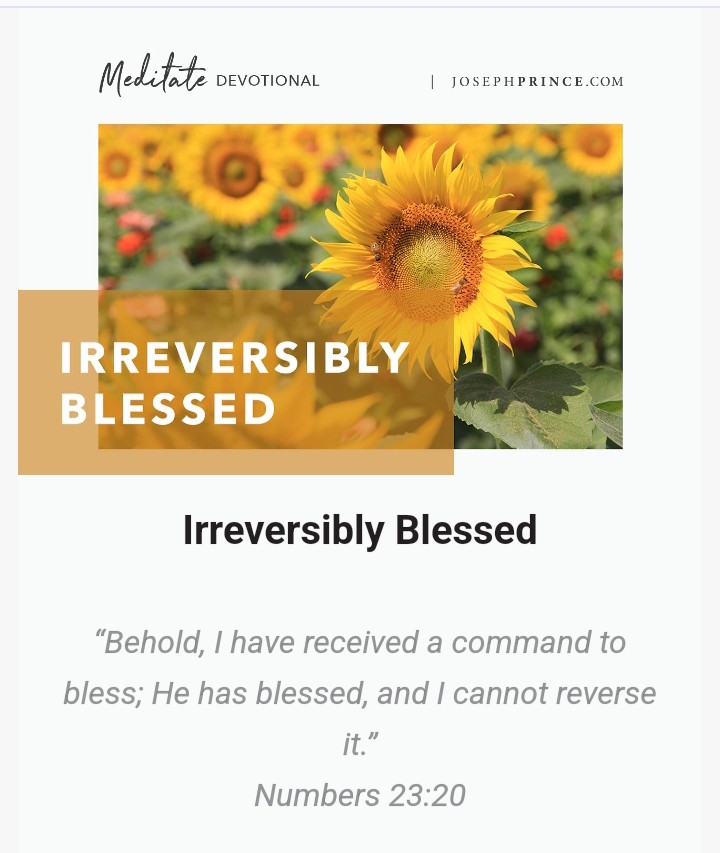 I want this right belief to sink deep into your heart: in Christ Jesus, you are irreversibly blessed. No matter how dire your circumstances may seem right now, put a smile on your face and a spring in your step. Whom the Lord has blessed, no one can curse!