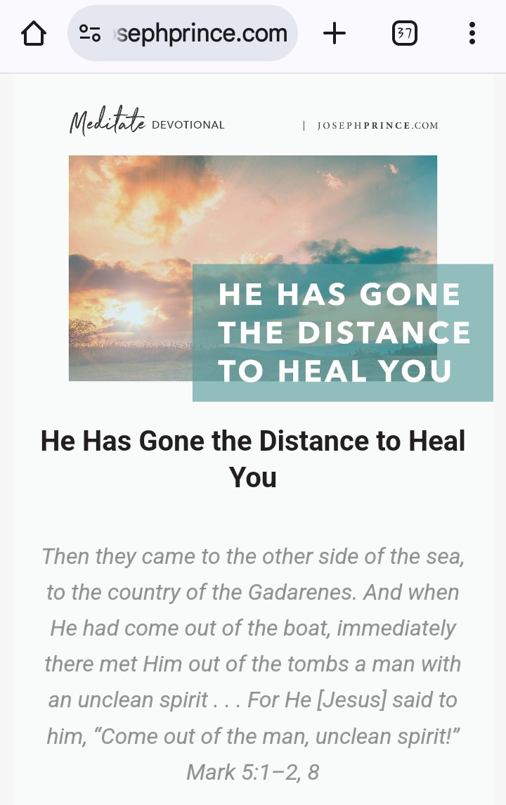 Just as Jesus went a long way to heal one man, He went to great lengths, to the point of death, to purchase liberty, blessings, and health for you. No sickness or circumstance, however grave or disastrous, is greater than what He has already done for you!