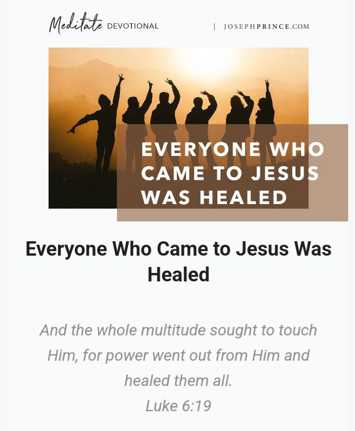 His healing virtue is powerfully released and the person is healed and overjoyed! That’s a powerful image to have in your mind whenever you are believing God for healing!
