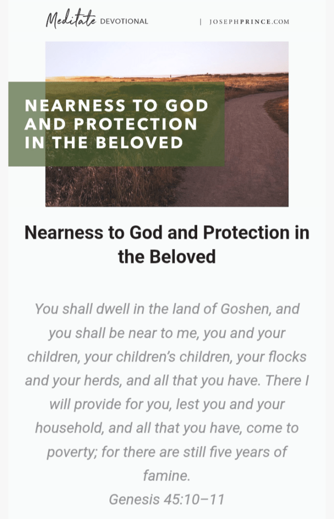 The name “Goshen” means “drawing near.” God wants you to be in “Goshen,” which is a place of nearness to Him, and there is no place nearer to Him than being in the Beloved (Eph. 1:6).