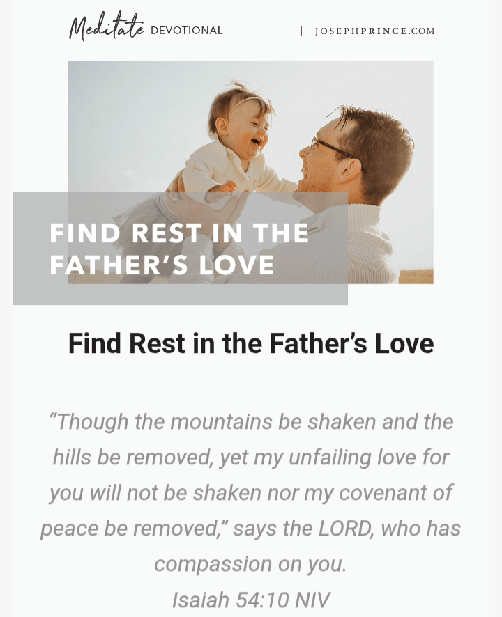 There is nothing for you to prove. You only need to rest and receive your Abba’s love. Let your life become established and grounded in a love that is so perfect that no challenge or adversity will be able to knock you down.