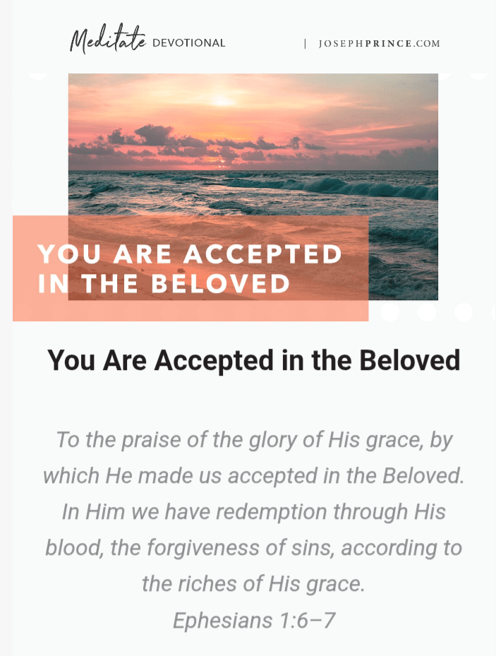 This is true for any believer of Jesus. The moment you received Him into your life, God the Father made you accepted in the Beloved.8