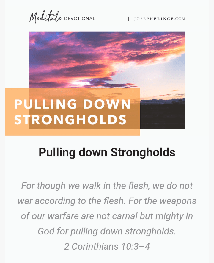 This battle for your mind is not waged externally. Our weapons in this battle are not physical or tangible. Our weapons are the weapons of right believing, and they are mighty in God for pulling down strongholds that have kept us bound. These are strongholds that can only be utterly torn down by rightly believing in the truth of God’s Word.