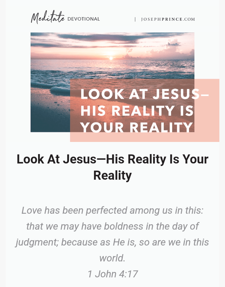 That’s why God wants us to look away from ourselves and look at Jesus. In God’s eyes, because He has placed us in Christ, Jesus’ reality is our reality today—”as He is, so are we in this world”!