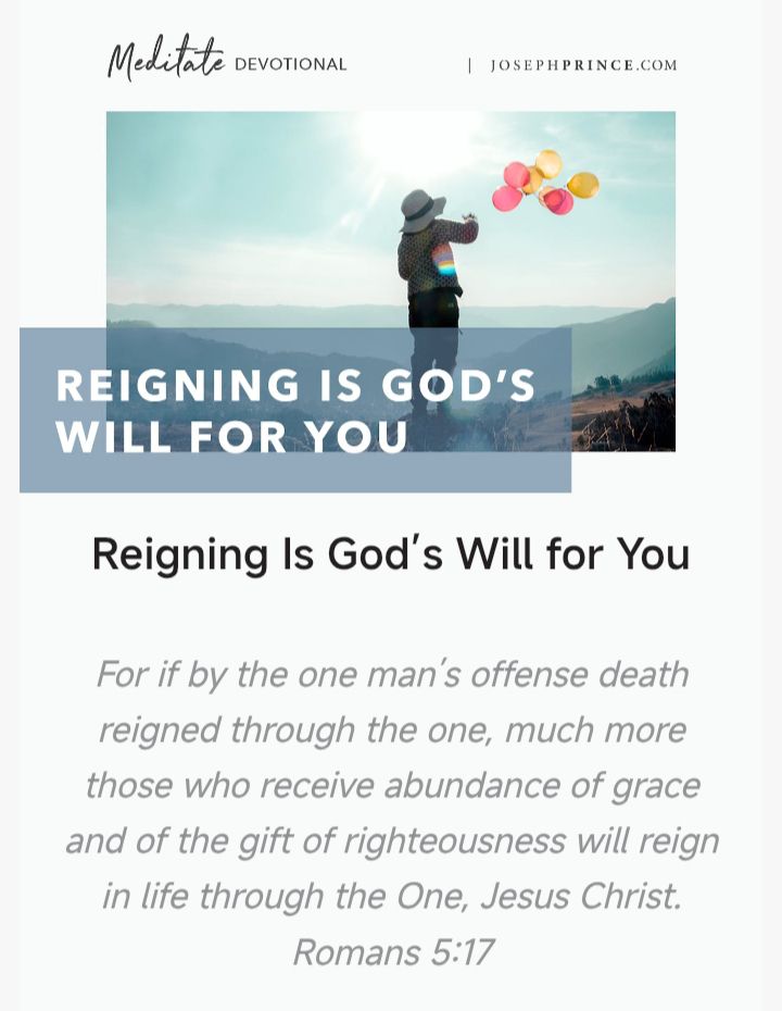 My friend, when you reign in life, you reign over sin, you reign over the powers of darkness, and you reign over depression, over perpetual lack, over every curse, and over every sickness and disease. You reign over the devil and all his devices!