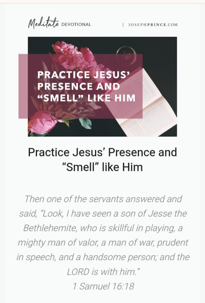 In the same way, you cannot be in the presence of the Lord without His glory, His majesty, His beauty, His power, His love, and His peace rubbing off on you. You begin to “smell” like Jesus, be powerful like Him, and be filled with peace like Him!