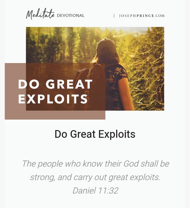 [13/11, 1:44 am] Odia Abuja: Have you ever wondered what gives a person the strength to become a champion, such as Daniel or David in the Scriptures? The book of Daniel tells us that “the people who know their God shall be strong, and carry out great exploits” (Dan. 11:32).