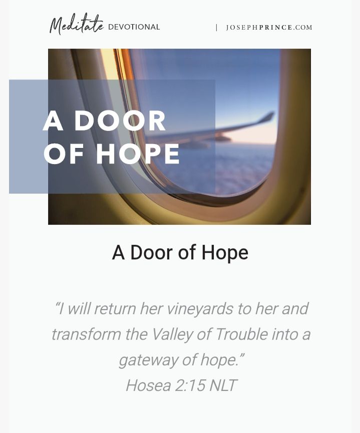 Step through the door of hope and out of your Valley of Trouble today. Jesus is your door of hope! Believe in His love for you and allow Him to lead you to freedom.