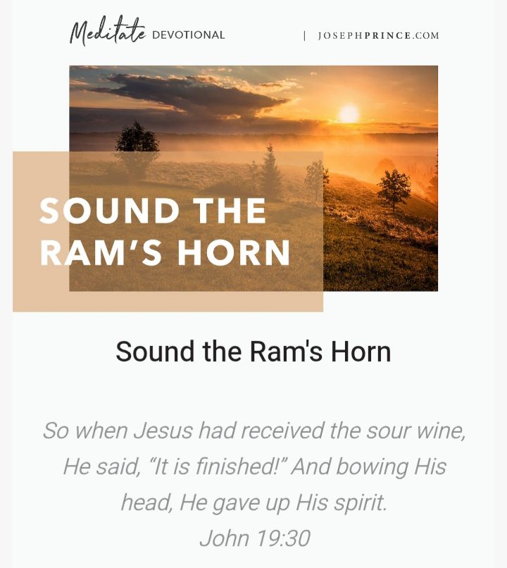 The ram’s horn is a beautiful picture of the death of our Lord Jesus. The ram had to die for the horn to be obtained. The sounding of the ram’s horn is thus a proclamation of our Lord’s death and finished work. At the cross, when Jesus had paid fully for all our sins with His blood, He proclaimed, “It is finished!”