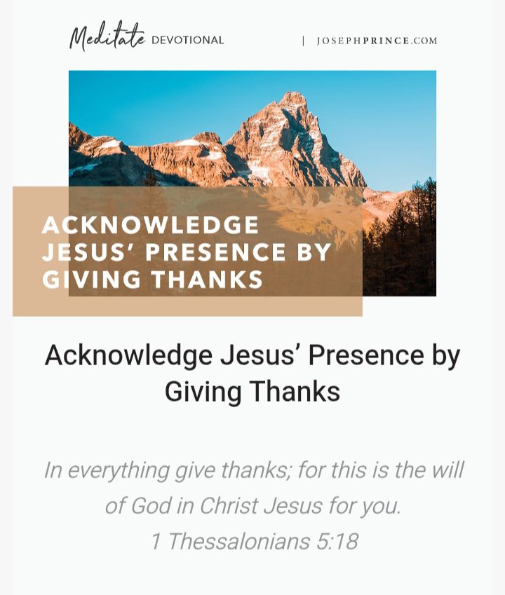 There is no limit to what you can thank Him for since every good and perfect gift that we enjoy today comes directly from Him (James 1:17). Even if you have had a rough day at work and you are facing a seemingly impossible challenge, you can practice His presence.