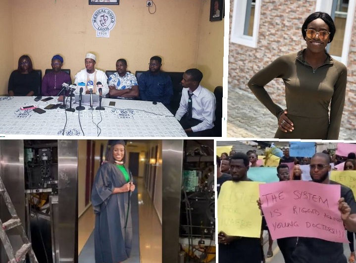 02/08/23 DANIELS O G The Nigerian Medical Association NMA Lagos State received with rude shock the death of one of ourMembers, Dr Diaso Vwaere, a Medical House Officer, whose death occurredas a result of injuries sustained when the elevator she was in crashed. This isheartbreaking, heart wrenching and quite unfortunate. We commiseratewith her immediate Family,Continue reading “BREAKING!NMA DECLARE 5 DAY MOURNING & INDEFINITE STRIKE OVER DEATH OF COLLEAGUE”