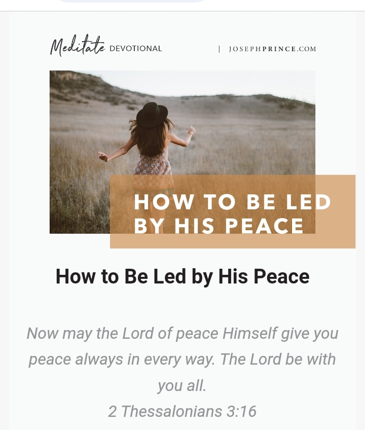 10/05/24 JOEL OSTEEN MINISTRIESTODAY’S WORD Today’s ScriptureThen the LORD turned to him and said, “Go with the strength you have, and rescue Israel from the Midianites. I am sending you!”Judges 6:14, NLT THE PROBLEM WITH RUNNING AWAYGideon was hiding from the enemy when an angel told him he was to lead the Israelites in battle,Continue reading “WHEN GOD BECOMES JEHOVAH SHALOM, THE GOD OF PEACE, IN YOUR LIFE, HE DOESN’T JUST SOOTHE YOUR EMOTIONS. HE WILL LEAD YOU WITH HIS PEACE.”