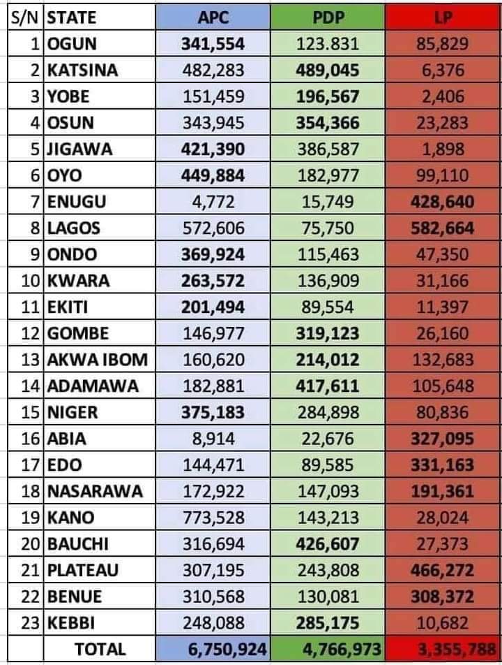 28/02/23 Shina J.O OVERALL PRESIDENTIAL ELECTION RESULT FOR RIVERS STATE REGISTERED VOTERS-3,315,005 Accredited voter’s:605055 A-1875AA-321AAC-443ADC-1823ADP-953APC -231,591APGA-1468APN-579APP-849BP-451LP-175,071NNPP-1322NRM:888PDP-88,468PRP-275SDP -10,514YPP-797ZLP-5963 TVV-523,615RV-30293TVC-553,944 Pls Check Here For More About Daranetworktv, like & Subscriber to us.https://youtu.be/8cGFDuvhMIE INEC BORNO STATE PRESIDENTIAL COLLATED RESULTS FOR THE FRONT RUNNER PARTIES:Out of the 27 Local Government Councils, 23 were won by the APC, while onlyContinue reading “MORE RESULTS FROM BORNO STATES,RIVERS & MORE”