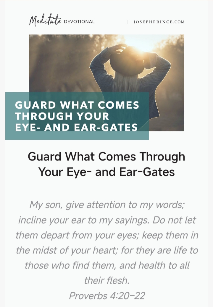 Gospel Corner 05/09/25 I always encourage my church to be mindful of their eye- and ear-gates. Essentially, this means that we need to be conscious of what we watch and hear on a regular basis. The Book of Proverbs, which is chock-full of God’s wisdom, tells us, “My son, give attention to my words; inclineContinue reading “Know what is good for the wholeness of your body and mind. Be wise—don’t overdose yourself on information and knowledge that does not infuse you with God’s life and power.”